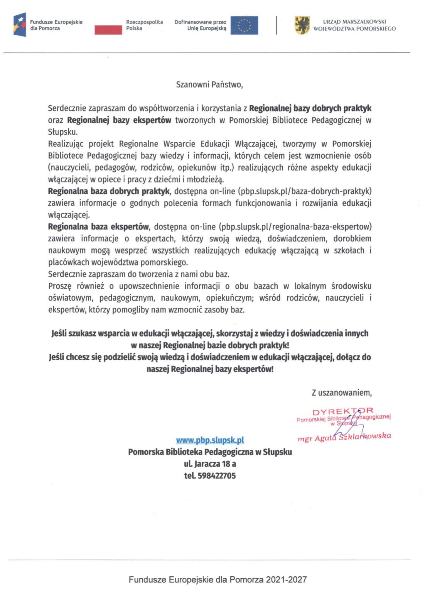 w Pomorskiej Bibliotece Pedagogicznej w Słupsku pracujemy nad tworzeniem Regionalnej bazy ekspertów i Regionalnej bazy dobrych praktyk dla wsparcia pomorskiej edukacji włączającej. Bazy tworzone są w ramach projektu „Regionalne wsparcie edukacji włączającej”.