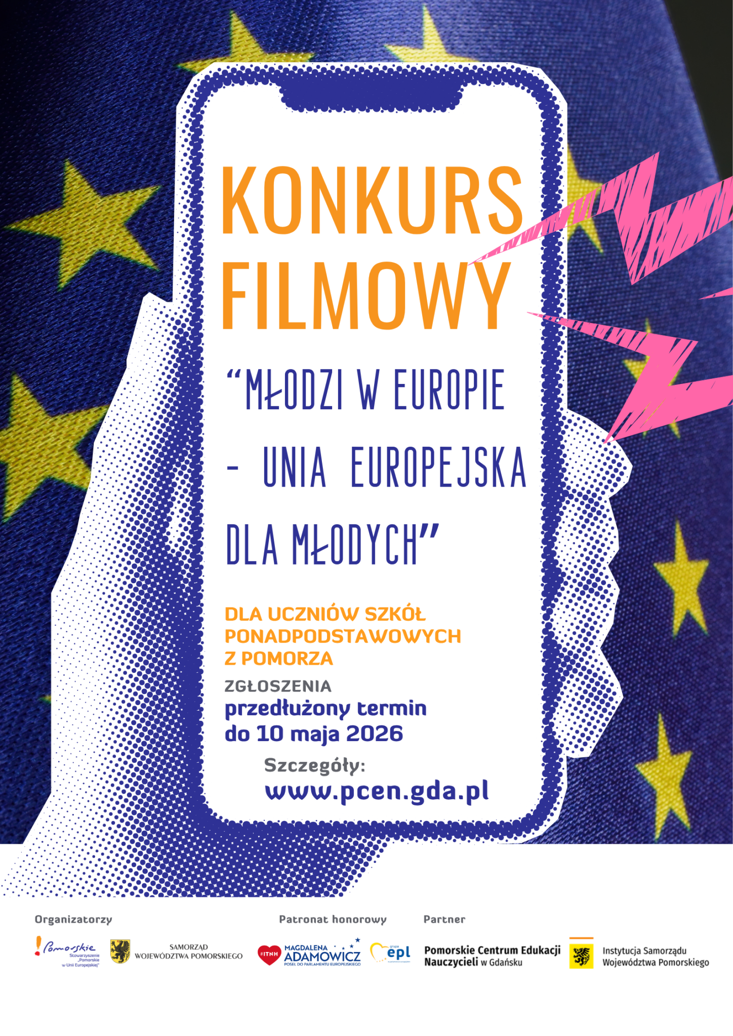 Stowarzyszenie „Pomorskie w Unii Europejskiej” oraz Urząd Marszałkowski Województwa Pomorskiego zapraszają do wzięcia udziału w konkursie filmowym skierowanym do uczniów/uczennic szkół ponadpodstawowych województwa pomorskiego (liceów i techników) z wyłączeniem ostatnich klas maturalnych.