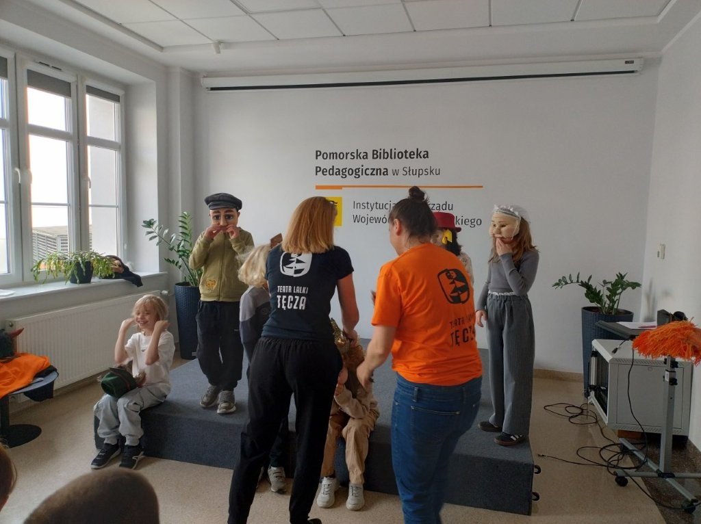 W ramach Międzynarodowego Miesiąca Bibliotek Szkolnych pod hasłem „Biblioteka zaprasza człowieka” odbyły się warsztaty teatralno-aktorskie prowadzone przez aktorkę Ilonę Zarembę oraz pedagożkę Małgorzatę Stecz z Pracownia Edukacji Teatralnej Teatru Lalki Tęcza dla uczniów szkół podstawowych ze Słupska.