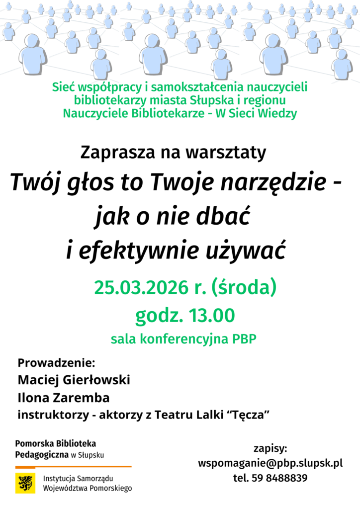 Pomorska Biblioteka Pedagogiczna w Słupsku serdecznie zaprasza na warsztaty dla Sieci współpracy i samokształcenia nauczycieli bibliotekarzy miasta Słupska i regionu
